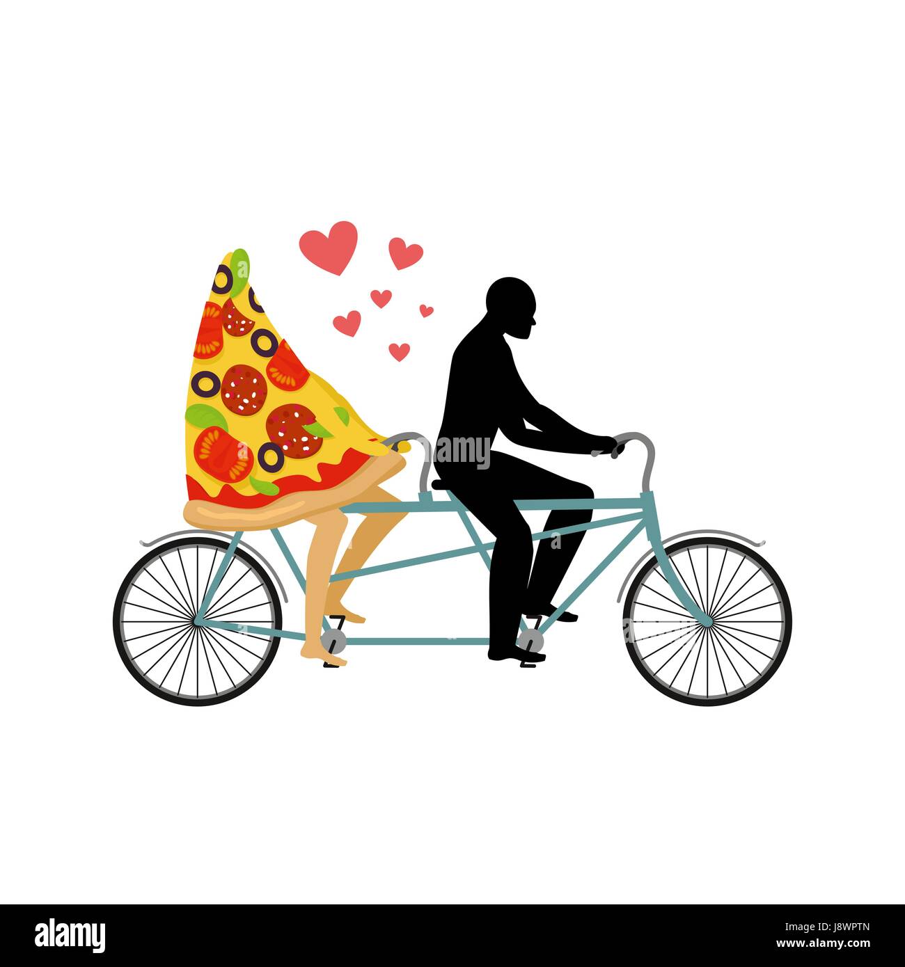 Pizza On Bicycle Lovers Of Cycling Man Rolls A Slice Of Pizza On Tandem Joint Walk With A Meal Romantic Date Italian Food Romantic Illustration L Stock Vector Image Art