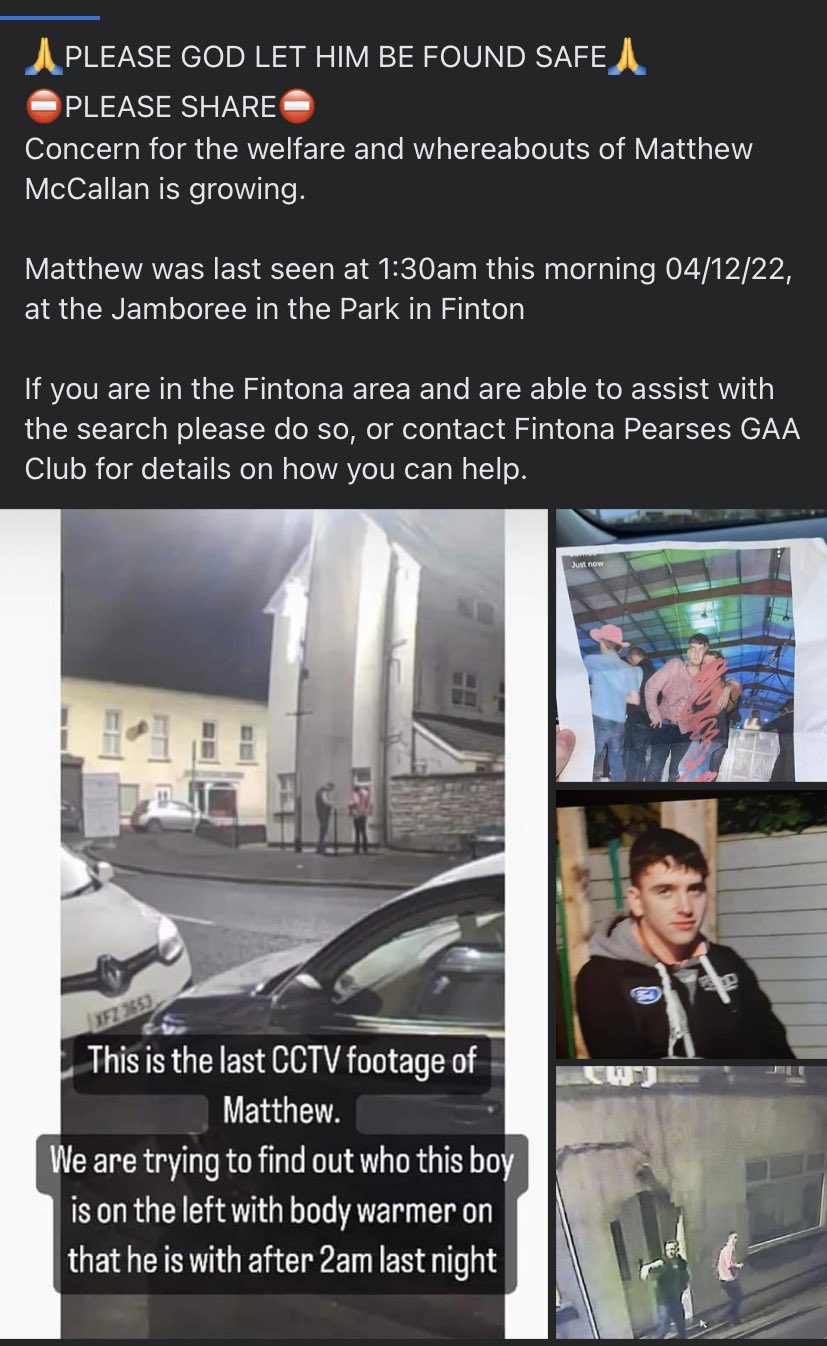4 minutes ago - 2 min read. The 15-year-old Dungannon teenager Matthew McCallan had gone out with friends on Saturday night for a country music night before going missing in the early hours of Sunday. Searches suspended for missing The search for missing teenager Matthew McCarron has reportedly been called off.